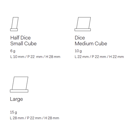 Typ kostky: Large - Velká kostka (15 g / L 28 mm / P 22 mm / H 28 mm)